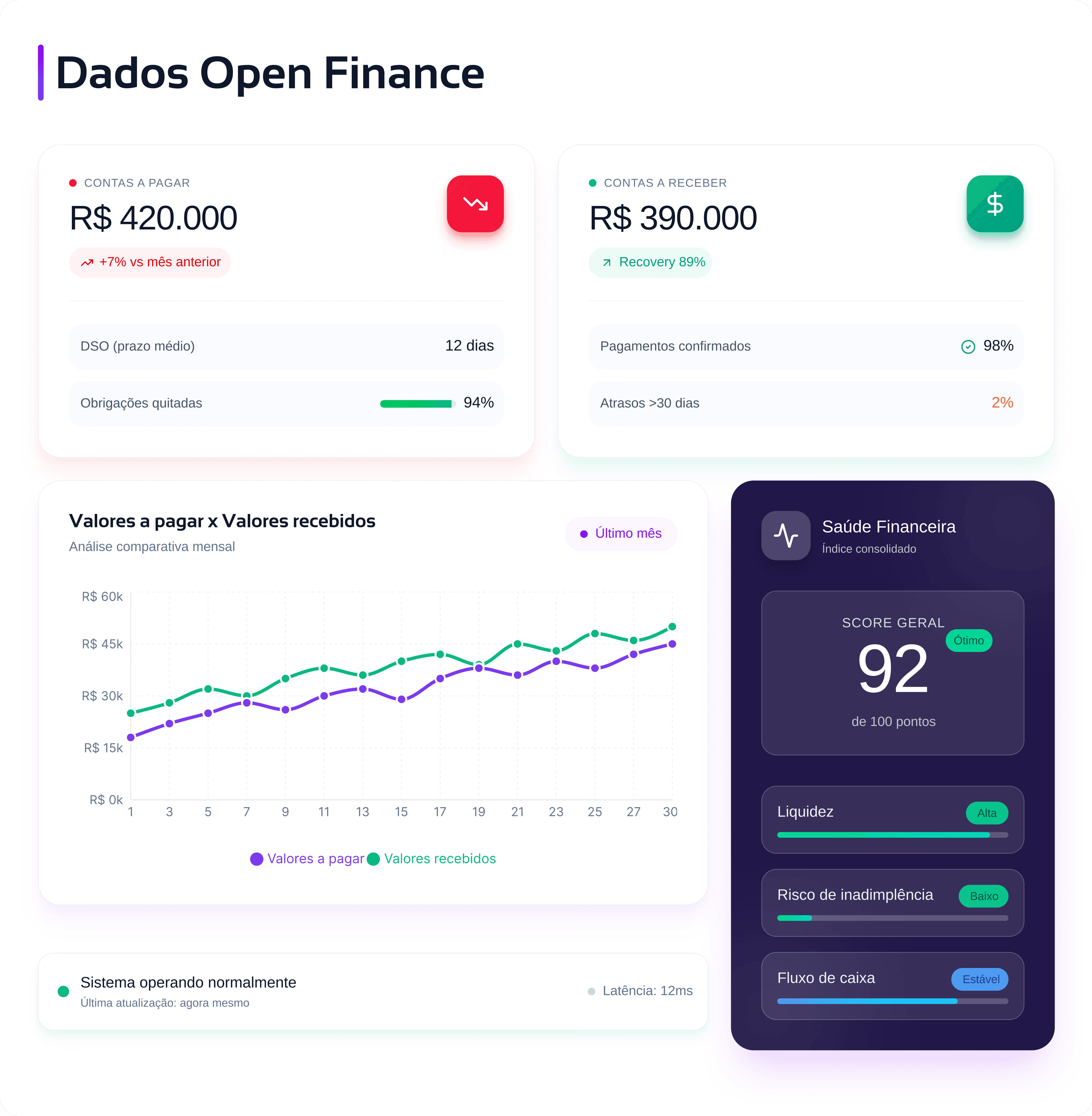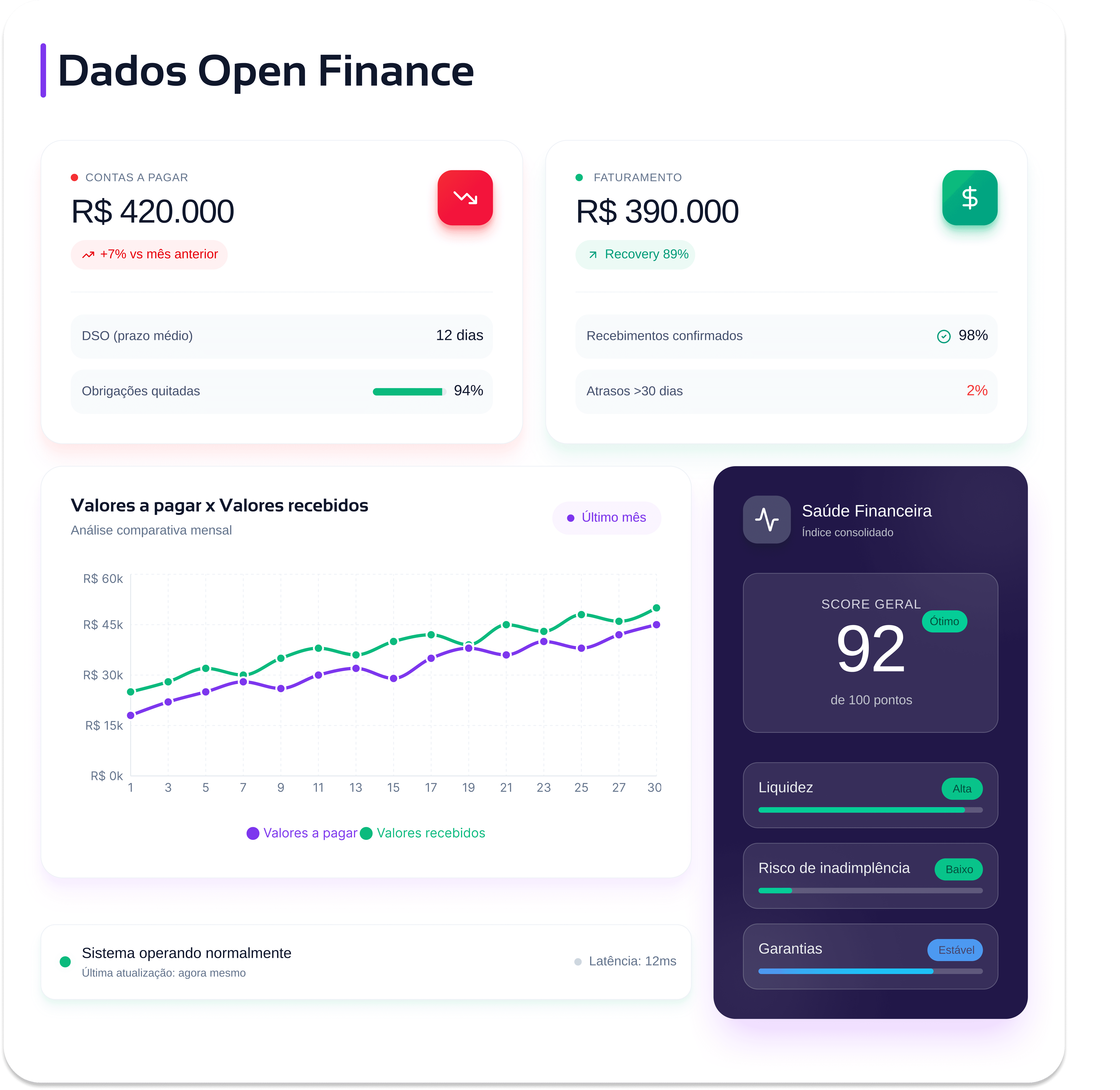 Acesso dados de faturamento e contas pagas, ao invés de scores estáticos, possibilitando uma concessão de crédito precisa.